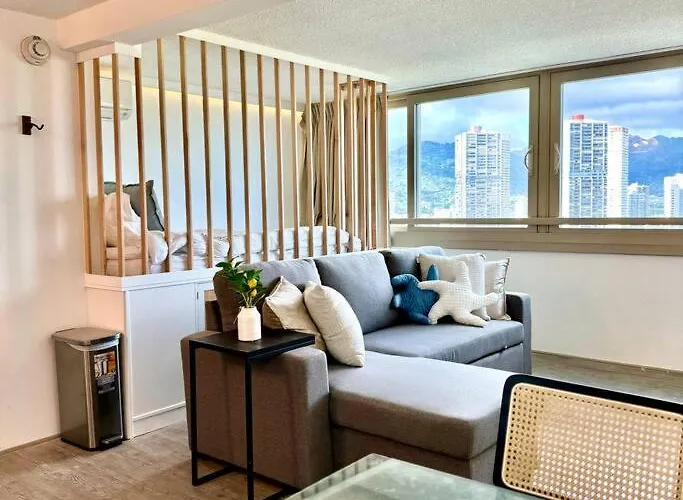 ベッドルーム1室のCentral Waikiki Luxury High Wtih Views & Beach ホノルルアパートはクラランス T.c. チング・フィールドから徒歩で25分くらいの場所にあり、周辺の数多くの観光スポットへ行きやすいです。 デューク・カハナモク像すぐ近くに位置する広々とした62m²のアパートで、顧客はプライベートなプールを利用できます。